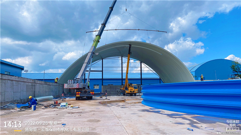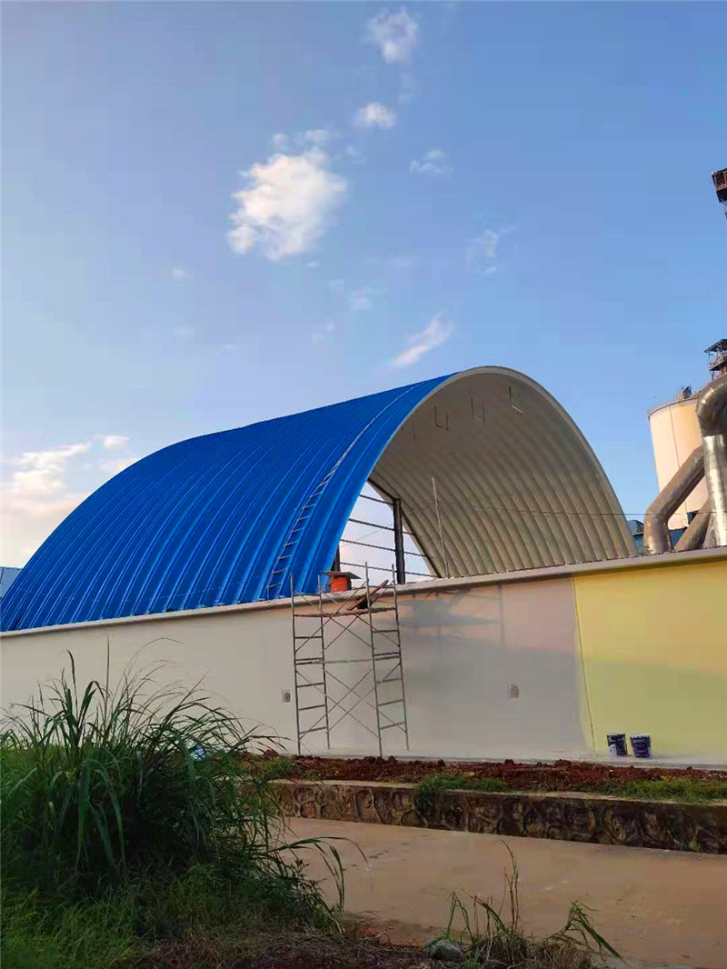 項目完工后,建設單位與業主單位聯合進行驗收,各項指標符合合同要求,施工結果獲得認可。拱形屋蓋安裝嚴密、排水順暢、結構牢固,適應華新水泥料棚嚴苛的工業使用環境。