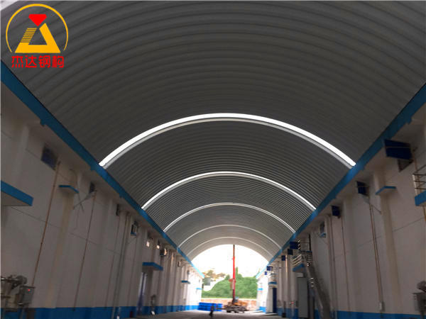 結(jié)構(gòu)形式采用拱形屋頂單元瓦,中間設(shè)計(jì)中空式采光帶,有效提升采光效果。
