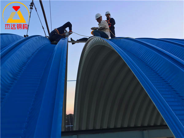 在拱腳和拱形屋頂中央兩側(cè)安裝角鋼支撐,保障結(jié)構(gòu)穩(wěn)定。