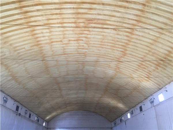 糧庫拱形屋頂施工完成吊裝后,通常會進行聚氨酯噴涂,以提升保溫效果和防護性能。